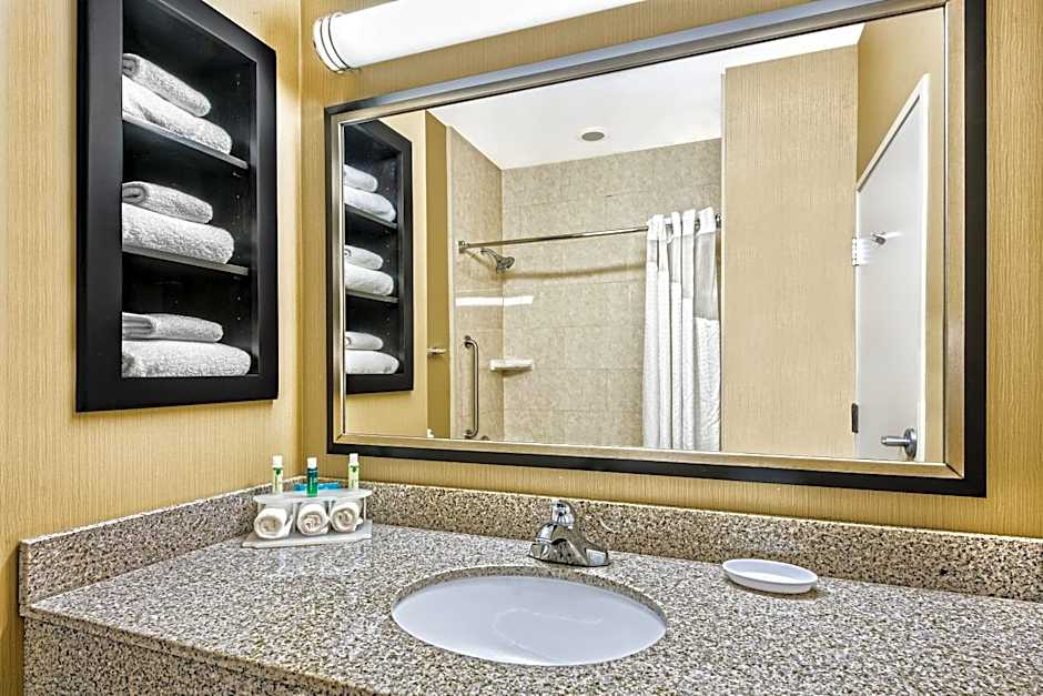Cable TV is provided in this room. There is also a separate seating area. A larger tub is installed.